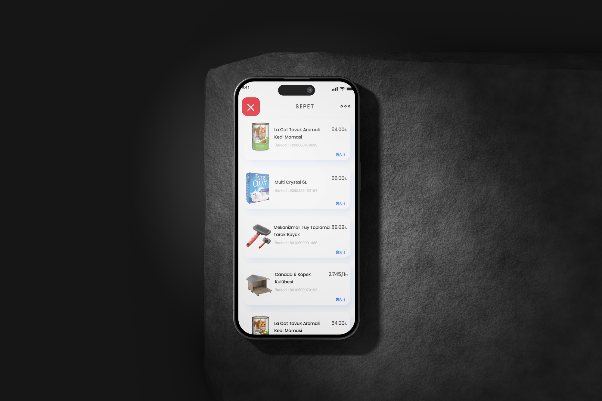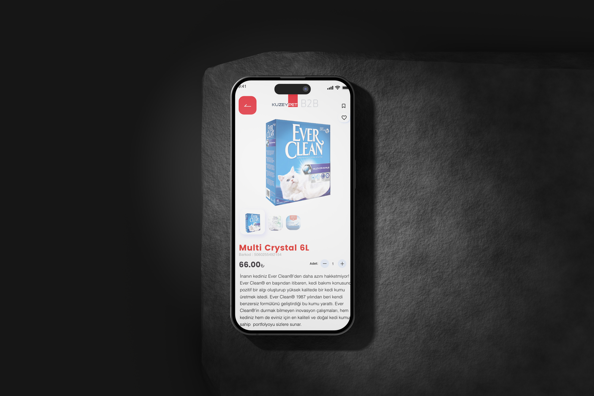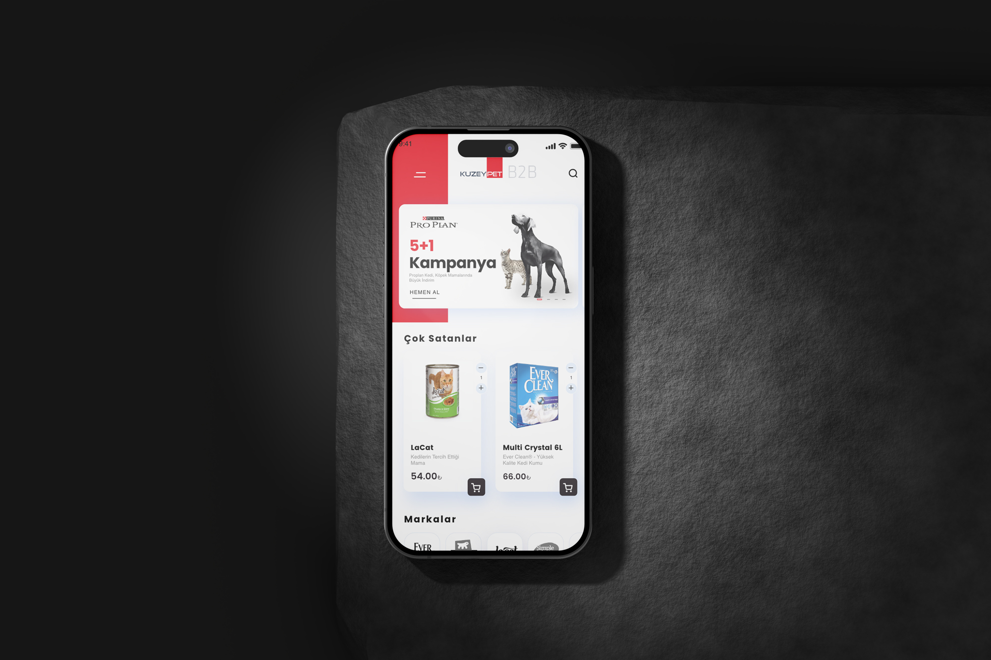 A mobile application was designed and implemented for KuzeyPet, which offers cleaning products and food brands for our little friends, to support its B2B system.